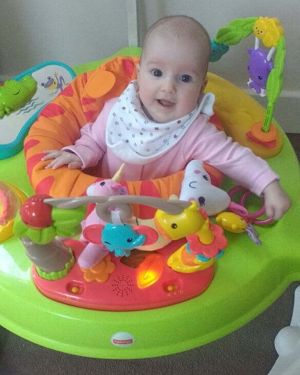 The jumperoo was a life saver. It was entertaining in all areas so my daughter had something to look at. The little monkeys hanging encouraged her to jump more however the seat was a little stiff for her to turn which she found difficult if she wanted to play with something else. It kept her entertained and we will be using again for the next baby. Great value for money. - Strengths: