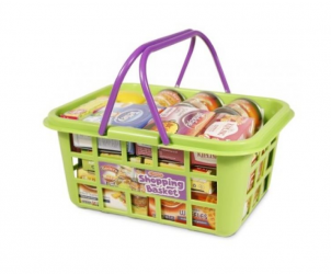 Casdon Toy shopping basket, with branded Bird's Eye boxes and Baxter's tins. Ideal for pretend shopping and compatible with other lines in Casdon's "Little Shopper" range.