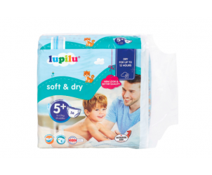 Lupilu's Size 5+ Junior Nappies keep little ones soft and dry for up to 12 hours.