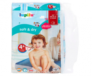 Lupilu's Size 4+ Maxi Nappies keep little ones soft & dry for up to 12 hours.