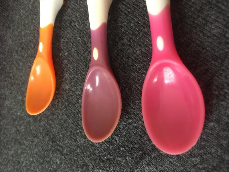 I am using these for wearing and I really like them. They are bright and colourful with a soft tip which is great for little mouths. The long handle is really helpful for helping my little one feed himself as I can help guide the spoon by holding the end. I have noticed a bit of dicolouration but they still do what we need. Great spoons would recommend for when weaning. - Strengths:
