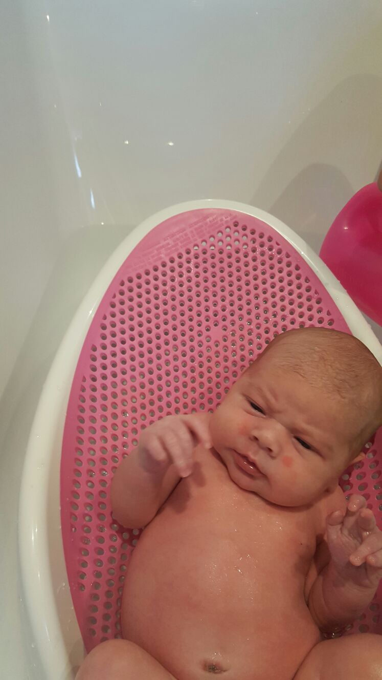 I currently live in a new build, which came with a large bath. After a few scary attempts I struggled to bathe my daughter while holding her at the same time. After researching a couple of different types. I came across this product, it was the colour (pink) that first drew my eyes. After I noticed the perfect shape of the bath that eased my mind as she wouldn't be able to go anywhere. Water drains around her, and there was a line in which you could fill the bath up. - Strengths: