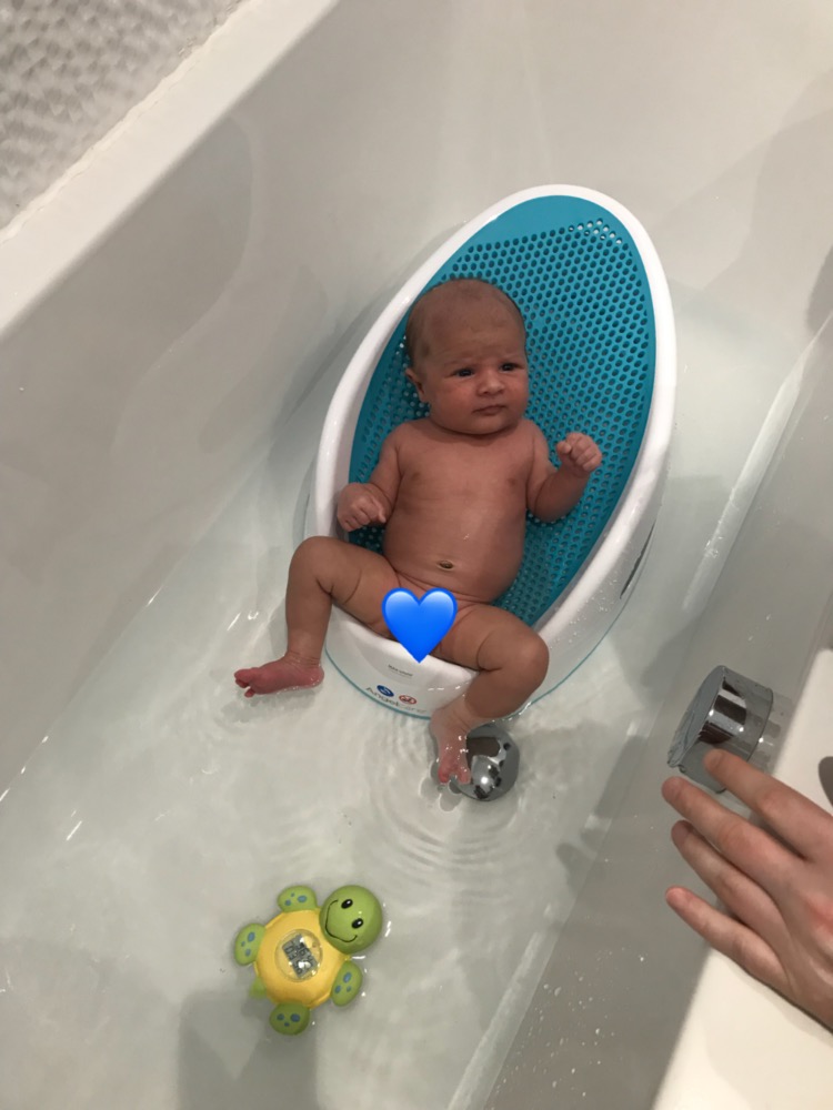 I found the angelcare bath support in Mamas & Papas and it was honestly the greatest buy! I used it from birth and found it absoultely brilliant. It lets you know the maximum amount of leveled water to use and once baby is comfortably seated there is no need to hold them for the whole durarion of bath time which is perfect for when they start wanting to splash. Once finished using the product it is so easy to wipe down and dry! - Strengths: