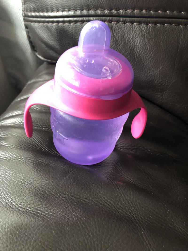 Found this little cup in Morrisons. Paid nearly a fiver but liked it for the size. My little one finds it hard to tilt bottles on her own to get a drink because she has to tilt it that far back where with this being very small she easily gets a sip of water. Had handles too to hold it steady and easy. Comes with lid to stop spillages. Pleased I found this. - Strengths: