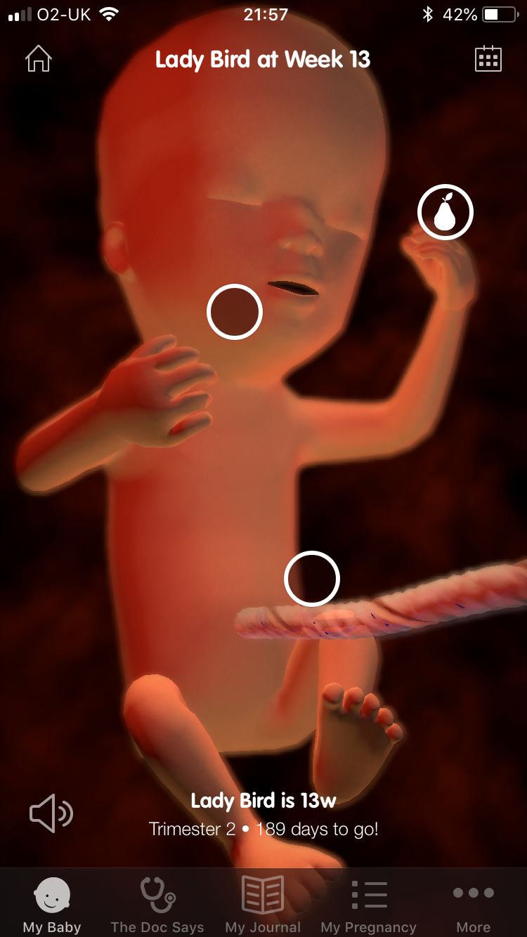 This app is amazing for tracking during pregnancy. It shows you a little 3D version of what your baby currently looks like (with weekly updates) and little facts with a size guide. It also has a journal section, so if something happens that you want to make a note of you have an easy to use log of what happened during your pregnancy. Plus there are other options to keep track of things like doctors appointments, to do lists and features like a contraction timer. It’s nice to have everything pregnancy related all in one place on my phone. I will be using this app all throughout my pregnancy and would definitely recommend it. - Strengths: