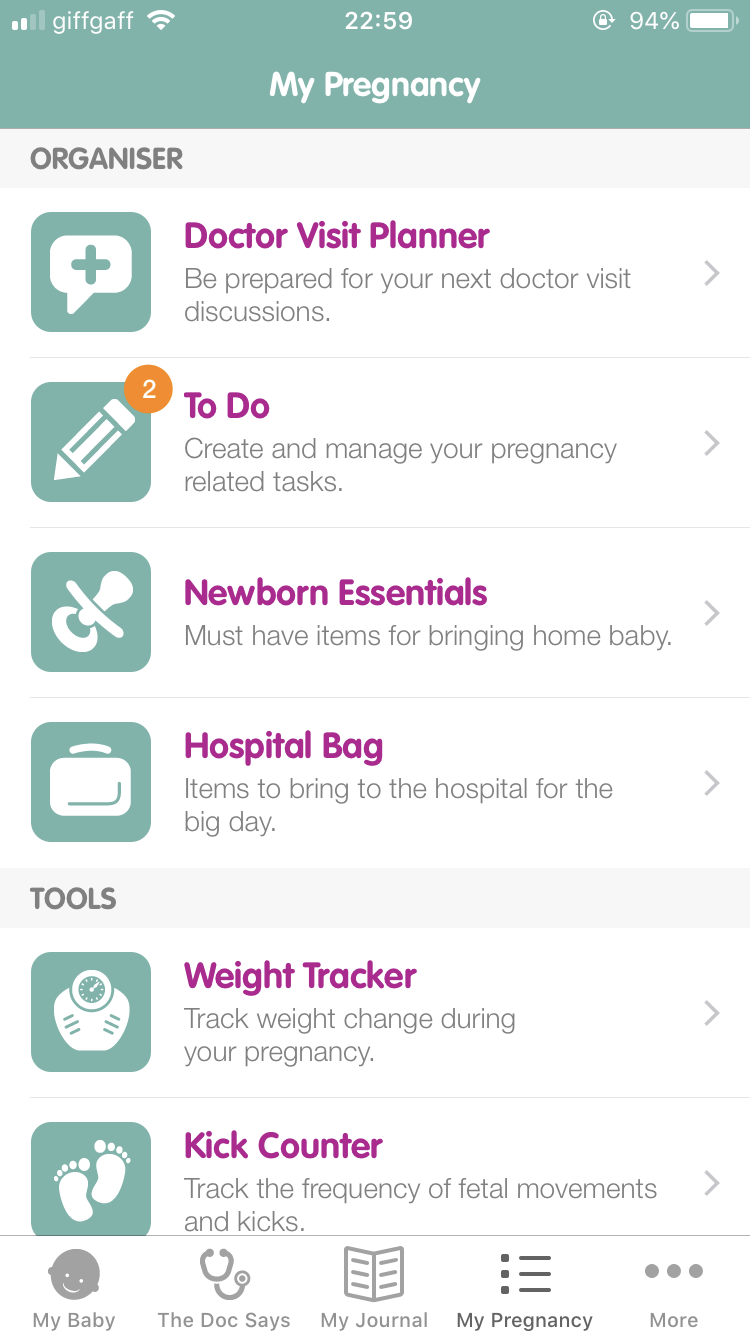 You can use the’my journal’ part to schedule in your appointments and the ‘doc says’ part gives you loads of helpful advice.