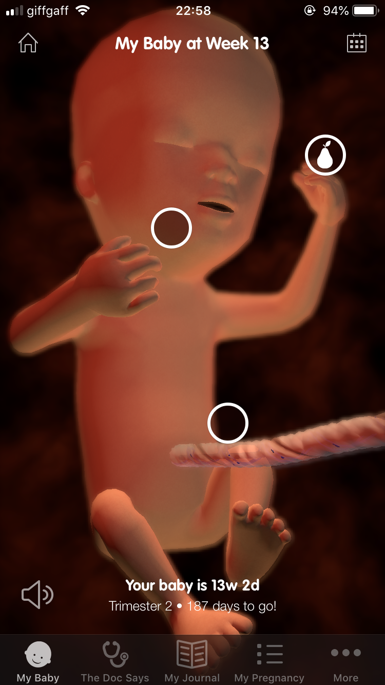 Every week you are given a lifelike 3D image of what baby looks like that week. There are notes linked to the image so you can see what’s developing that week too.