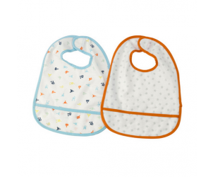 We have found of the numerous different bibs for our messy eater that these wash well. Which is great as they still look new after numerous uses. Nice unisex patterns. Slightly waxy coat makes them easy to wipe clean. Velcro back - not lost its stick yet. Shame when I was last in store to get some more I couldn't find any. They are slightly small so some food goes around the edges. - Strengths: