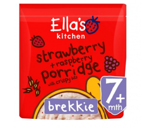 Ella's Kitchen Strawberry and Raspberry Porridge 7m+ is a blend of organic maize, oats, strawberry and raspberry porridge with rice bits.