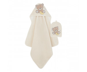 This set is lovely, the towel is nice a big making it perfect to wrap around little one even as they grow bigger, its also nice and soft to its gentle on their skin, the little teddy design on the hood and the mit is a nice added detail, both items wash well and are still soft even after a few washes, all round a great item. - Strengths: