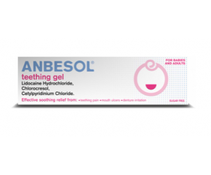 Anbesol 'Teething Gel' can help to soothe and ease your baby's gums which may be sore from teething. Teething is a painful part of growing up but parents can lessen the pain by applying Anbesol teething gel onto the infected area. This smart gel contains an anaesthetic which provides quick-acting and effective pain relief and can help prevent these sores against infections.