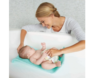 The Babies R Us Towelling Bath Sling cradles baby whilst they take their bath. Several positions are possible.