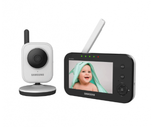 The Samsung 'SEW-3040W is a Wireless Video Monitor' allows parents to keep a close eye on their little one, from within your home. The slim, compact wireless monitor with an ultra-large 4.3 LCD colour screen has high resolution brilliance in colour and clarity for a clean and crisp picture of your little one. The Pure Digital Signal utilises 2.4GHz frequency to provide secure and interference-free video uninterrupted by wireless routers, microwaves or cordless phones. From a range of 800 feet, you can do what you need to without losing contact with your baby. This Samsung SEW-3040W Monitor goes beyond just listening, its built-in mic lets you talk back, hum a llullaby or tell your little one you're close or on your way. Its Sound Level Indicator LED lights make sure you'll know when your baby needs attention, even when you're in a noisy room. The camera has night vision capability up to 15feet, using infrared LED lights, so you can keep an eye on your little one even in the dark/