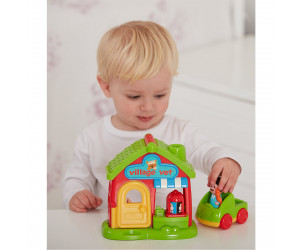With the Happyland Village Vet, you can drive the vet all around the village. Press the buttons on the roof top to hear all the fun noises.