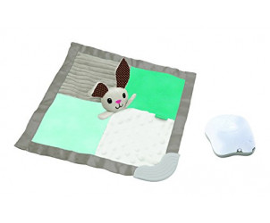 Infantino WOM Birth Set: The WOM birth set features a bunny cuddle toy made from various textures and materials and a soft teether, as well as a tabletop nightlight with a USB charger.