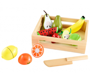Discover ELC Wooden Fruit Crate, a vibrantly coloured fruit selection that can be safely cut with a wooden knife. Observe how the inside of the fruit looks and enjoy playing greengrocer with your friends.