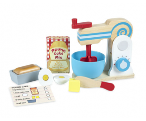 This 'Make-a-Cake Mixer Set' from Melissa and Doug will mix up some yummy pretend-play fun with this realistic wooden mixer.