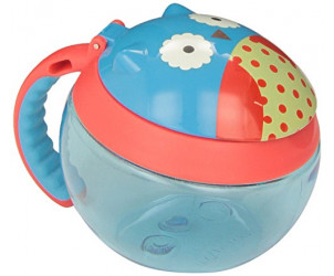 This colourful container features a snap lid to keep snacks fresh, as well as a flexible inside opening to prevent snacks from falling out the pot.